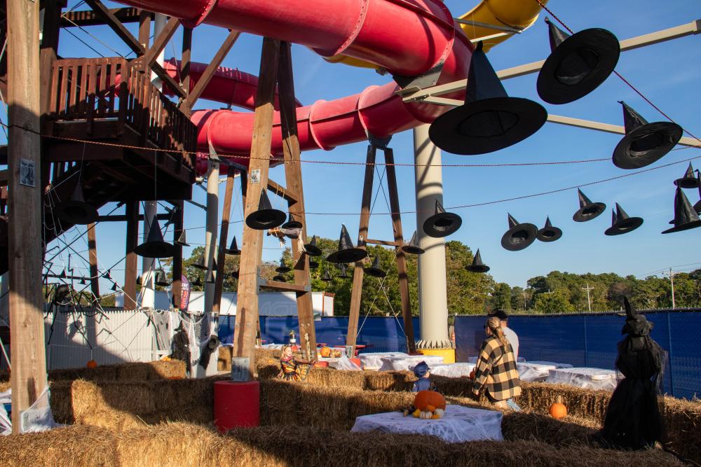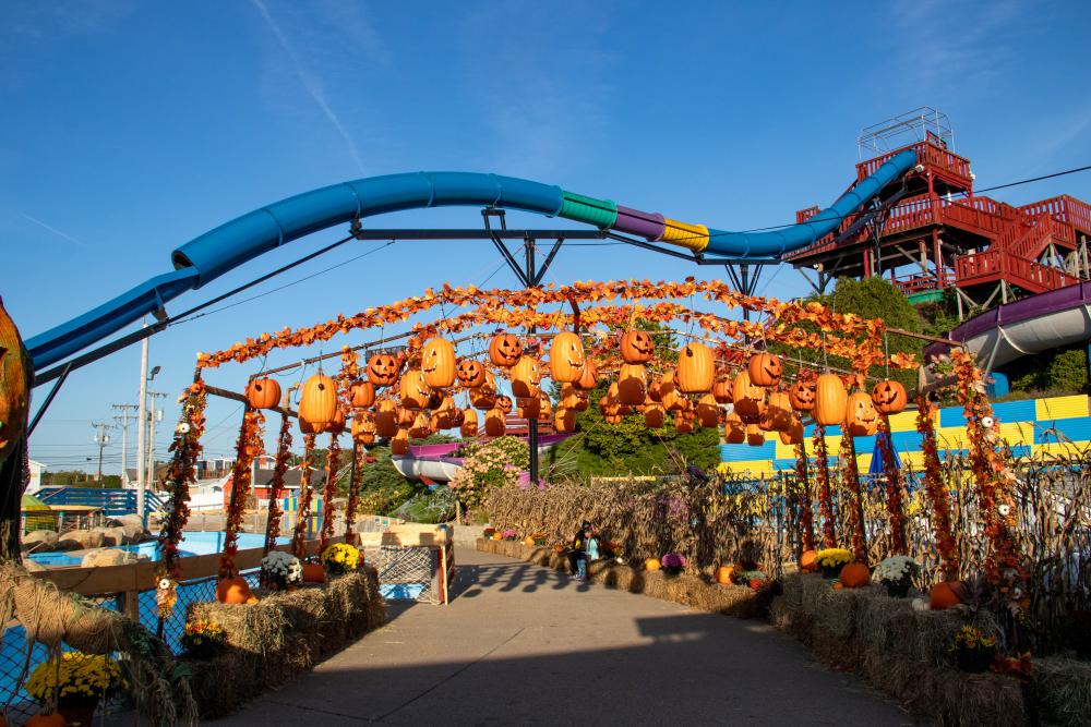 While the water slides may not be open, the park is decorated with ghouls, goblins and everything spooky as well as a variety of carnival games and other attractions. There is a trick-or-treat trail for kids and a haunted house that opens up in the evening.