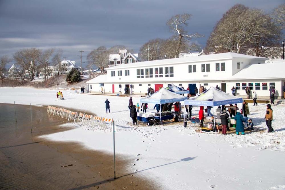 Prior to actually taking the plunge, participants lined up on Onset Beach which was covered in the morning’s snowfall and many said the snow made the day more memorable.