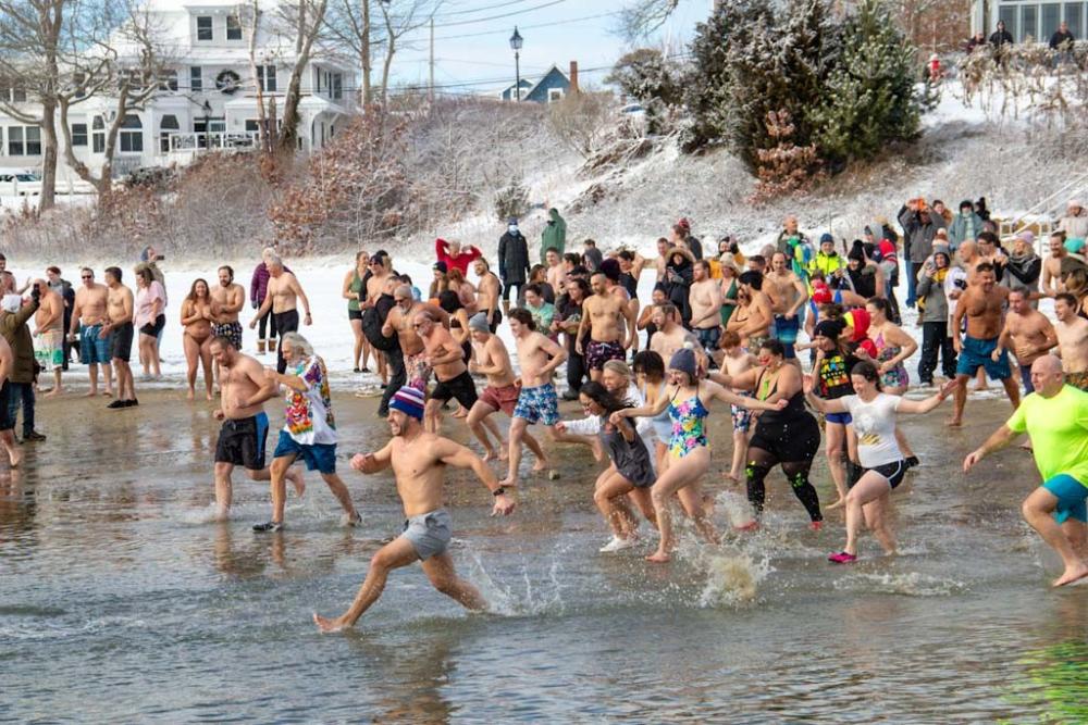Around 400 people chose to start the new year by diving into the near freezing water of Onset Bay Thursday, Jan. 1 during the Onset Bay Center’s annual Polar Plunge.