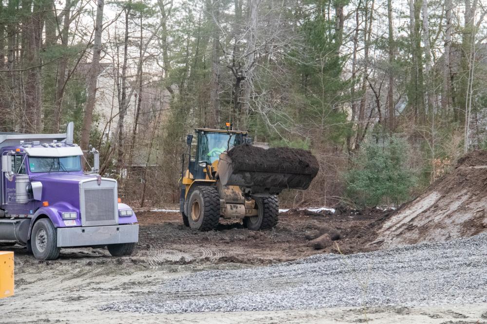Construction is being done near Town Hall to clear space for materials and equipment being used to replace the bridge on Route 6 over the Weweantic River.