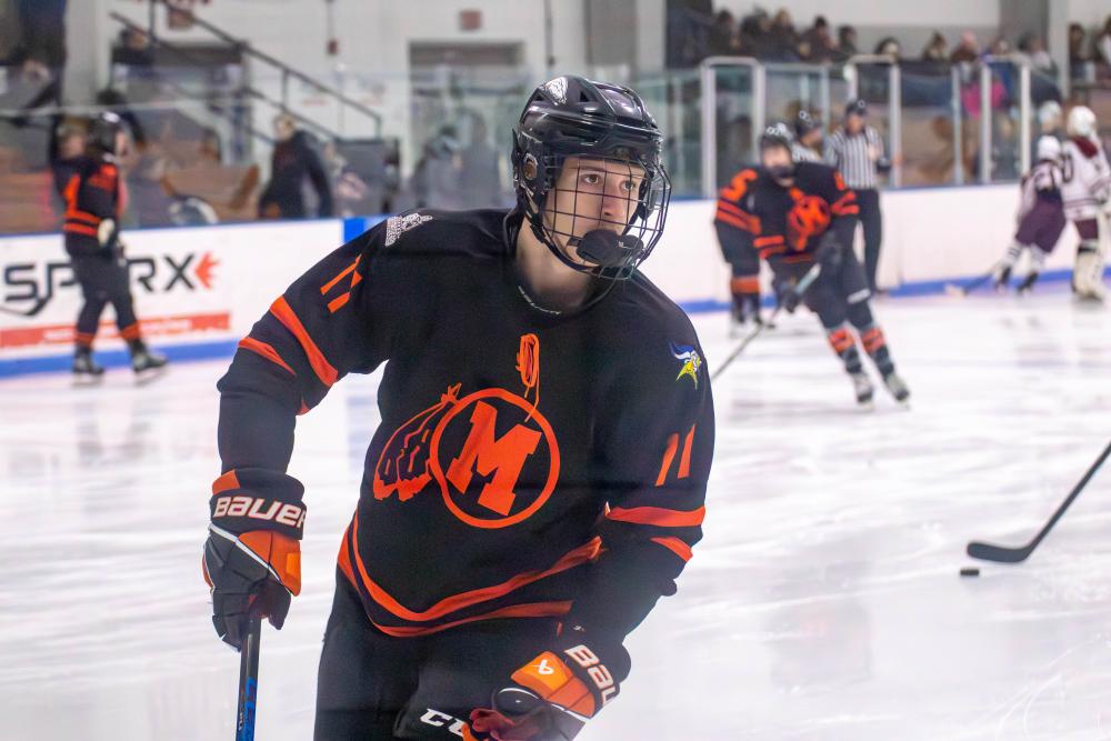 Senior Keenan Peterson is one of two Wareham residents lacing up the skates and hitting the ice this winter not as a Viking, but as a Middleboro Sachem.
