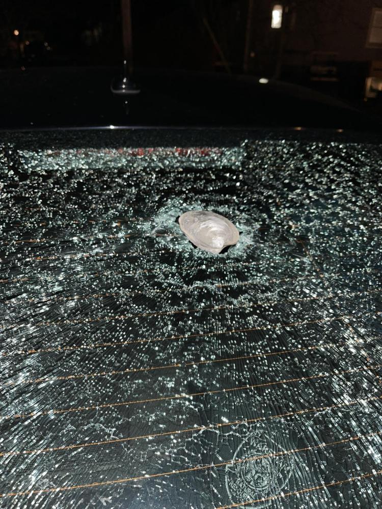"We pulled over into Kool Kone parking lot because I said 'why is my back windshield all wet and none of the other cars are wet?' And we get out and I realize the windshield is cracked," Glennon said.