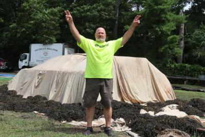The bake is wrapped by large tarps, heated with oak wood and steamed with seaweed, which the Redmen gathered in boats along the river the day before, said Reed.
