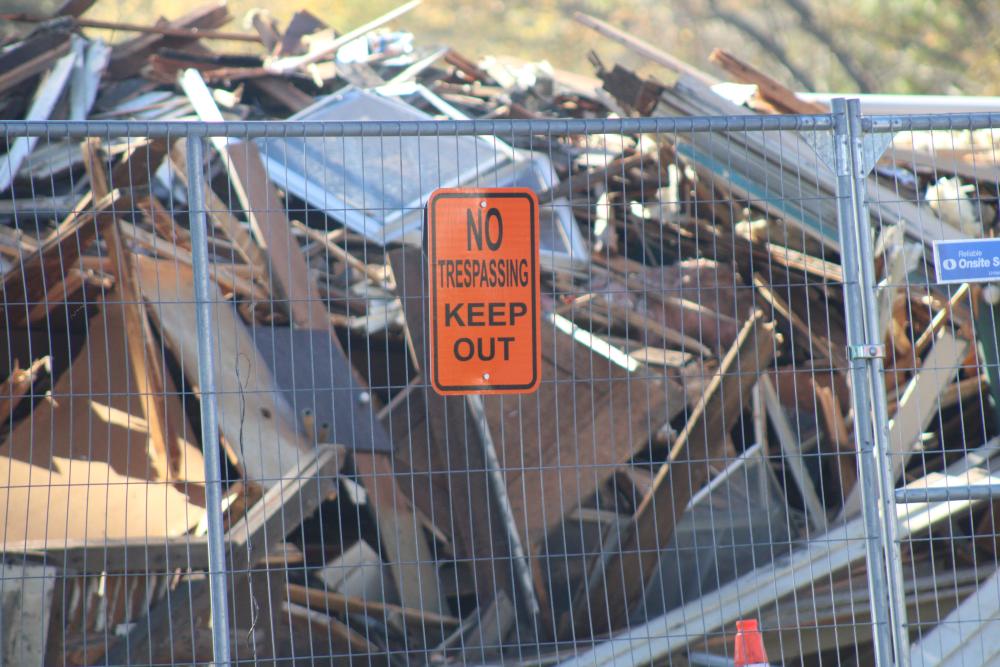 The demo took down the two-story home. Photo by Brandy MuzThe town has demolished a two story home on the corner of Viking Drive and Marion Road after purchasing the property following approval at the Special Town Meeting in January 2025.