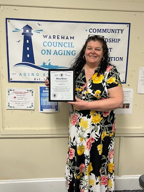 Wareham Council on Aging Director Sharon Rice was recently honored by the Massachusetts state senate for her work.