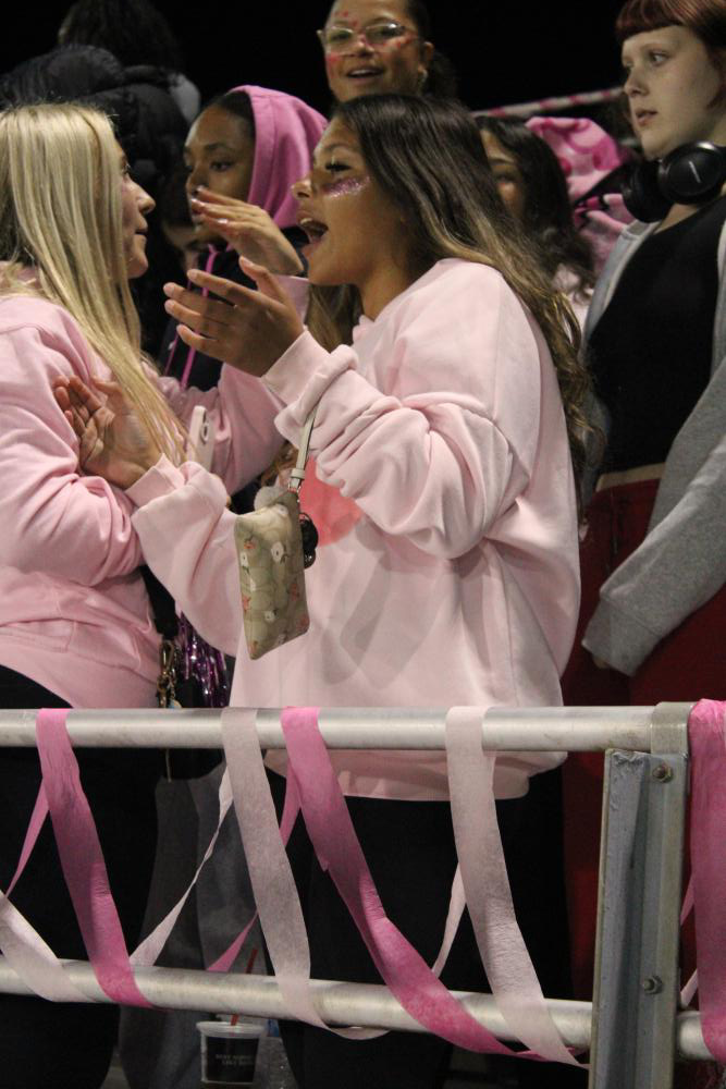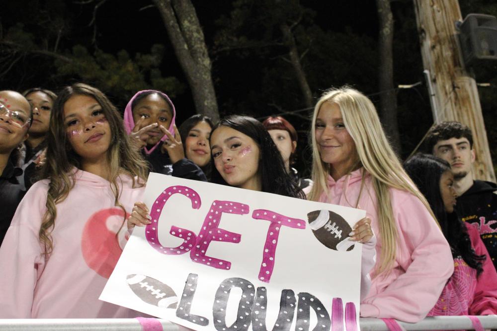 Junior Gianna Hernandez and senior McKenna Duggan were decked out in pink for the homecoming game theme against rivals Upper Cape Cod Regional Vocational Technical High School. The two can be found most Fridays at Spillane Field shouting out onto the turf.