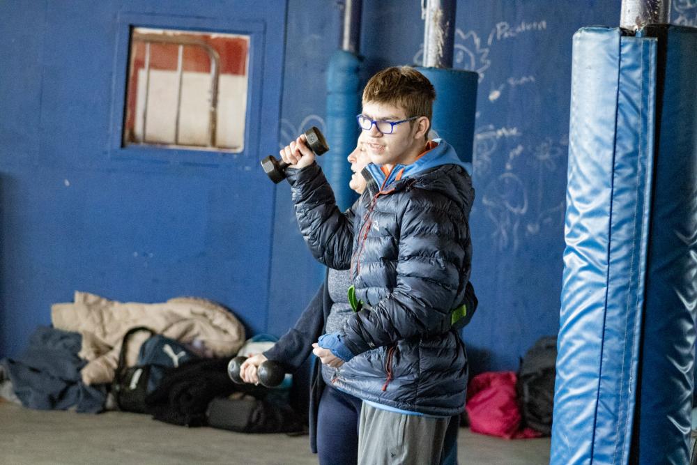 Tyler Maclver stretching before beginning weightlifting. Photos by Brandy Muz