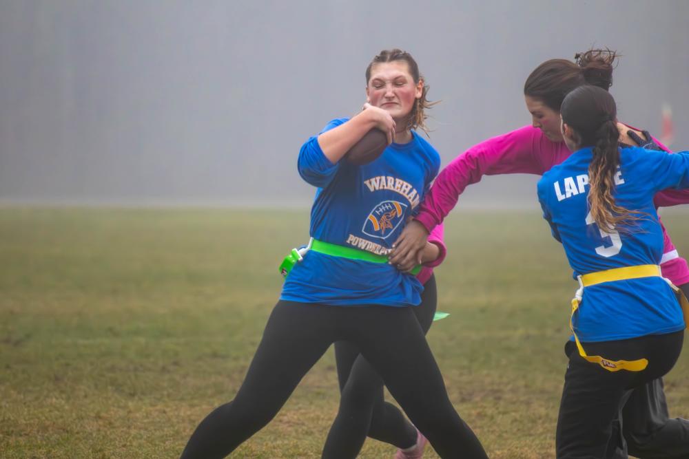 The annual Wareham and Old Rochester powderpuff flag football game came down to the wire but that didn’t stop the Vikings from taking home the win.