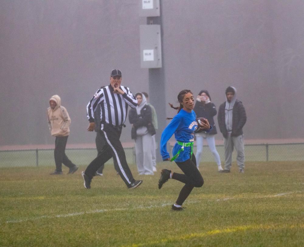 Every year, girls from Old Rochester Regional High School and Wareham High School face off before Thanksgiving in flag football. Despite foggy and misty conditions, the Vikings pulled out the overtime win by a score of 12 to 6 Wednesday, Nov. 26, earning their seventh win in nine years.